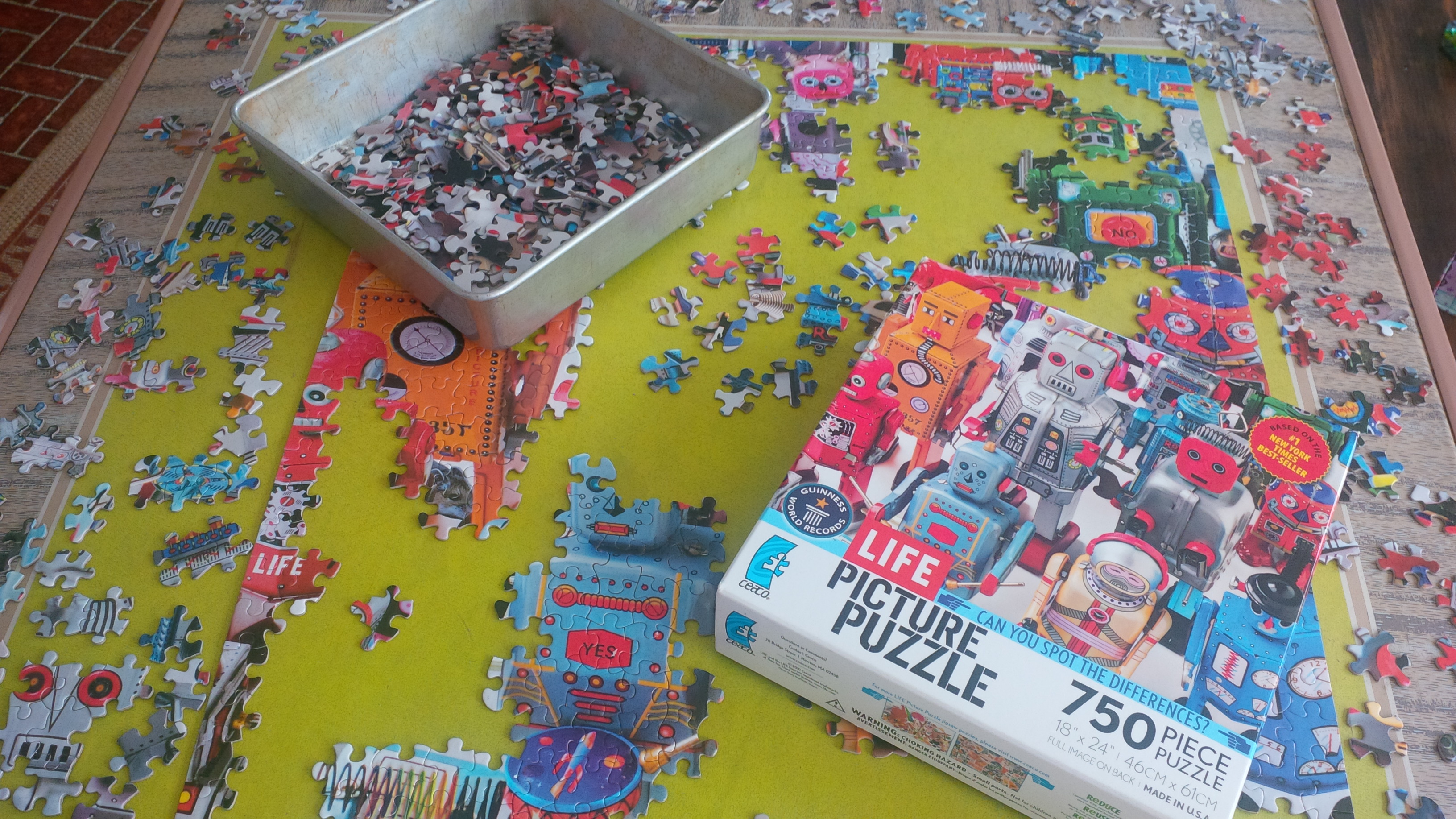 A few weeks ago at the cottage we worked on a puzzle that holds the Guiness Record for being the largest “find the difference” puzzle so there are 71 differences between the image on the box and the puzzle.